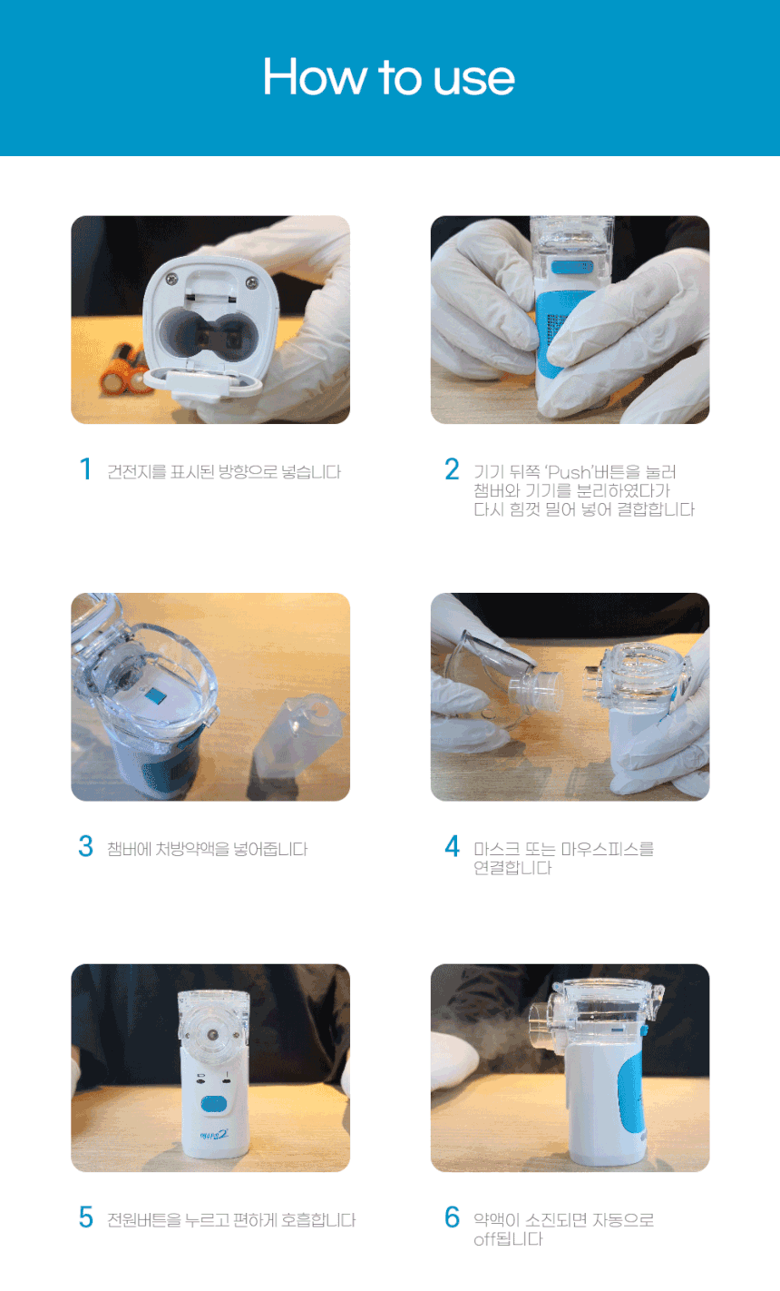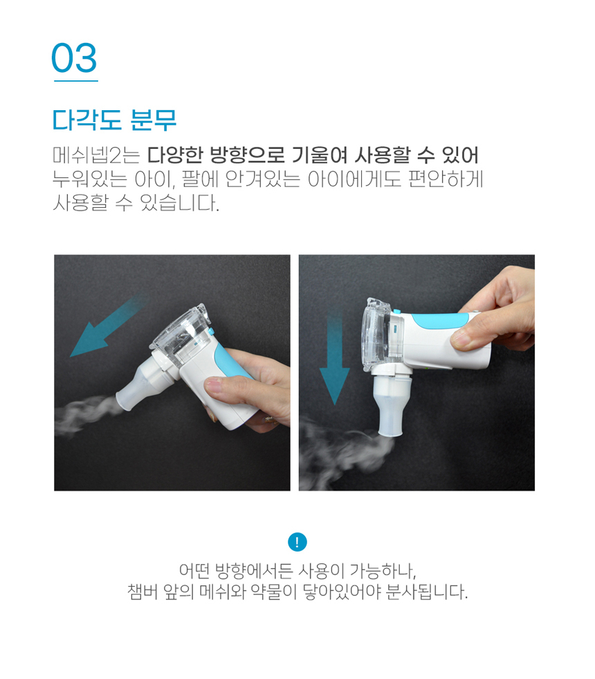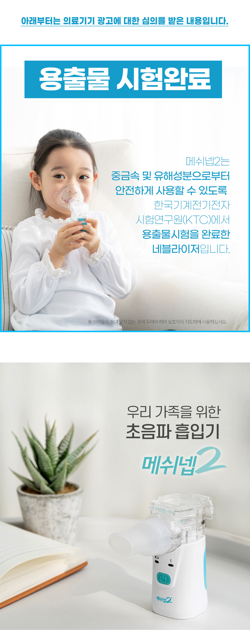 | 구매전 주의사항 | 한방약물/아로마 사용금지. 점성이 높은 약물 사용불가. 벤토린,풀미칸 등 양약 약제만 사용 가능. (아로마, 한방처방, 뮤코미스트, 아마카신 황산염 등 사용금지) | ||