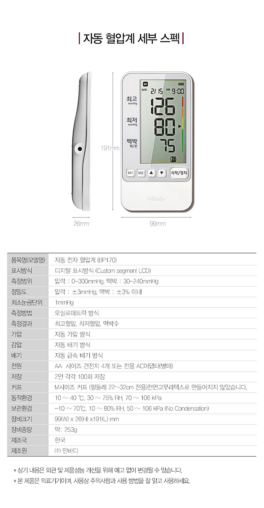 | 제조사 / 제조국 | (주)인바디 / 대한민국 | ||