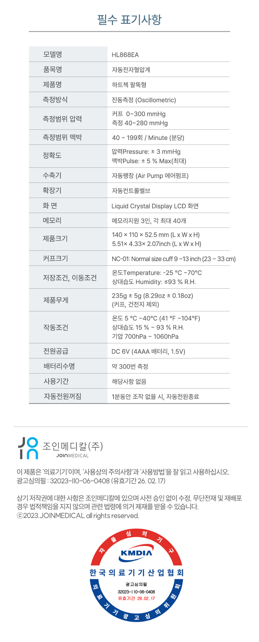 | 제조사/수입사 | 헬스앤라이프 / (주)조인메디칼 | ||